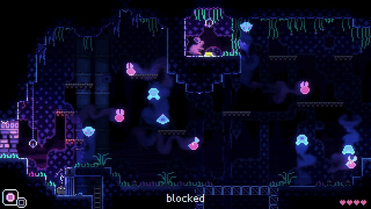 | Walk past the room with the cliff. For this puzzle, you need the Animal Flute in Animal Well. Find eight eggs and unlock it in the Egg Room to proceed.